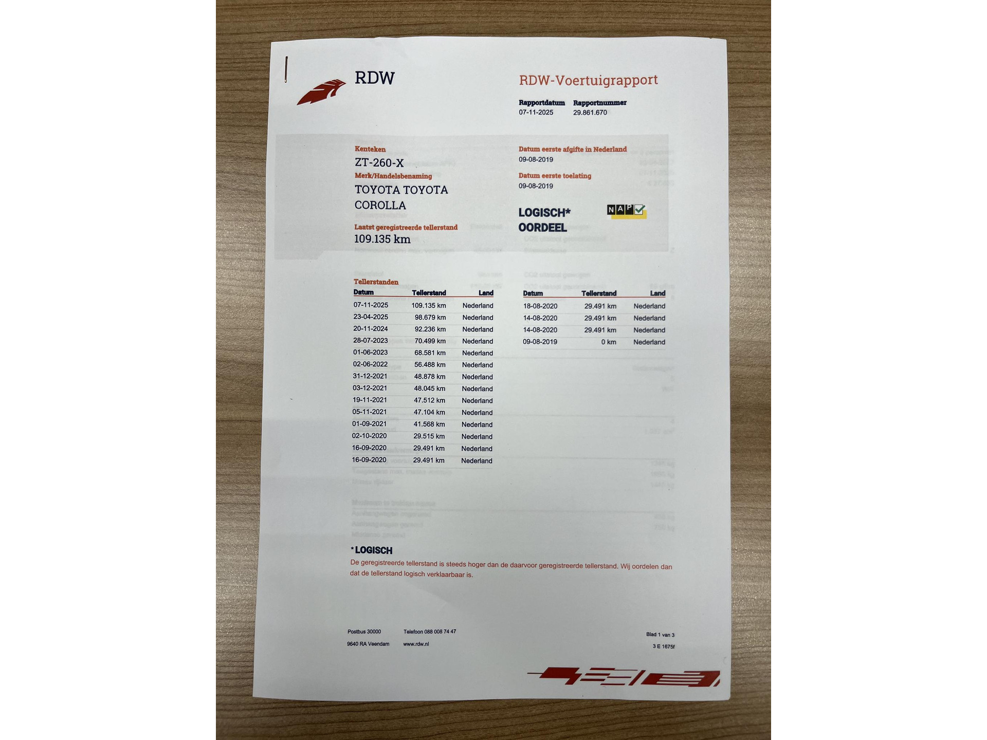 • RDW tellerrapport (NAP)
