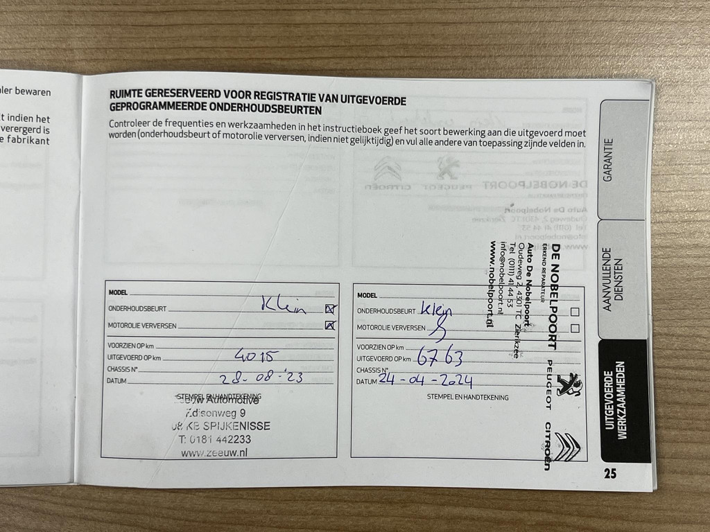 - Onderhoudsboekje (fysiek)